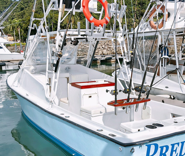 Beautiful 28’ Shamrock Express. The sportfishing charter located at Los Sueños marina, Herradura bay, is equipped with the necessary safety gear and navigation electronics. Rods, reels, and terminal tackle are included as well as snacks and drinks. This affordable fishing charter is located just 1 hour and 15 minutes driving distance from the San Jose airport (SJO), and very close to Jaco Beach, one of the most popular destinations of the Northen Pacific coast of Costa Rica.